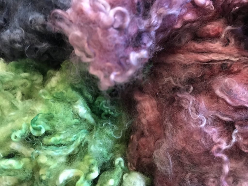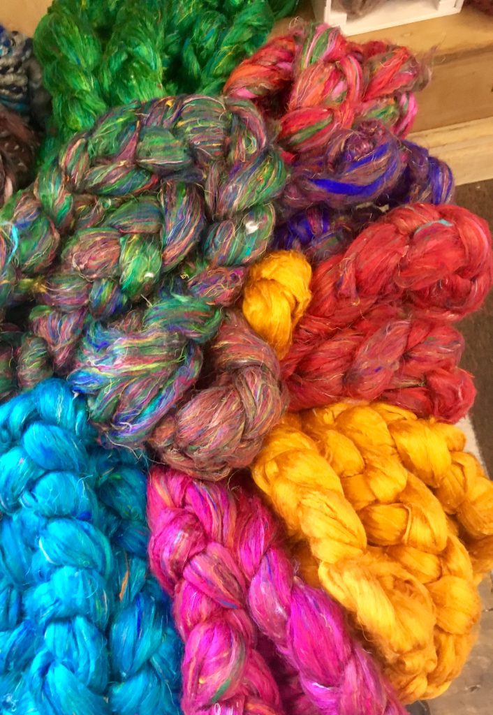 And a wide range of carded fibre and custom blended batts for spinning and felting in both dyed and British natural fibres, recycled sari silk and hand spun yarn.