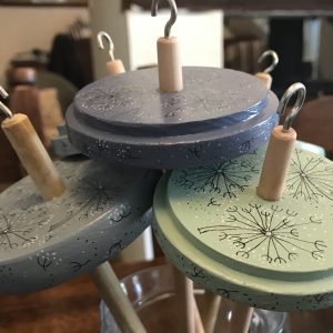 £20.00Individually hand painted at The Lace Knittery HQ in one of my favourite dandelion clock designs. They have a soft chalk paint base and then the floating dandelion design is painted (with teeny tiny brushes) across all surfaces of the whorl. This enables you to swap between using it as a top or bottom whorl spindle. Finally each painted whorl is given multiple coats of varnish to make them hard wearing. There are two different weights available 30g, which is a good all rounder and 60g, which is good for finer weight spinning. Each is unique.