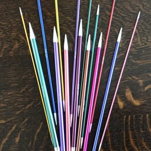£4.80 – £5.50Knit Pro double pointed needles in the Zing range, aluminium with silver tips. They are a seamless knit and colour coded for size, making them easy to pick out of your needle case or spot when rolled under the sofa…or is that only me!