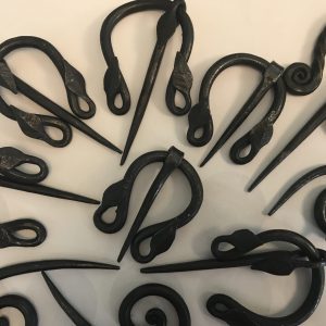 £25.00 – £32.00Shawl pins hand forged especially for The Lace Knittery by Moonlight Forge in Cornwall. They are two designs; a traditional penannular, which can be used to fasten both woven and woollen garments and a twisted design, which can be used for woollen garments. Each one is unique.